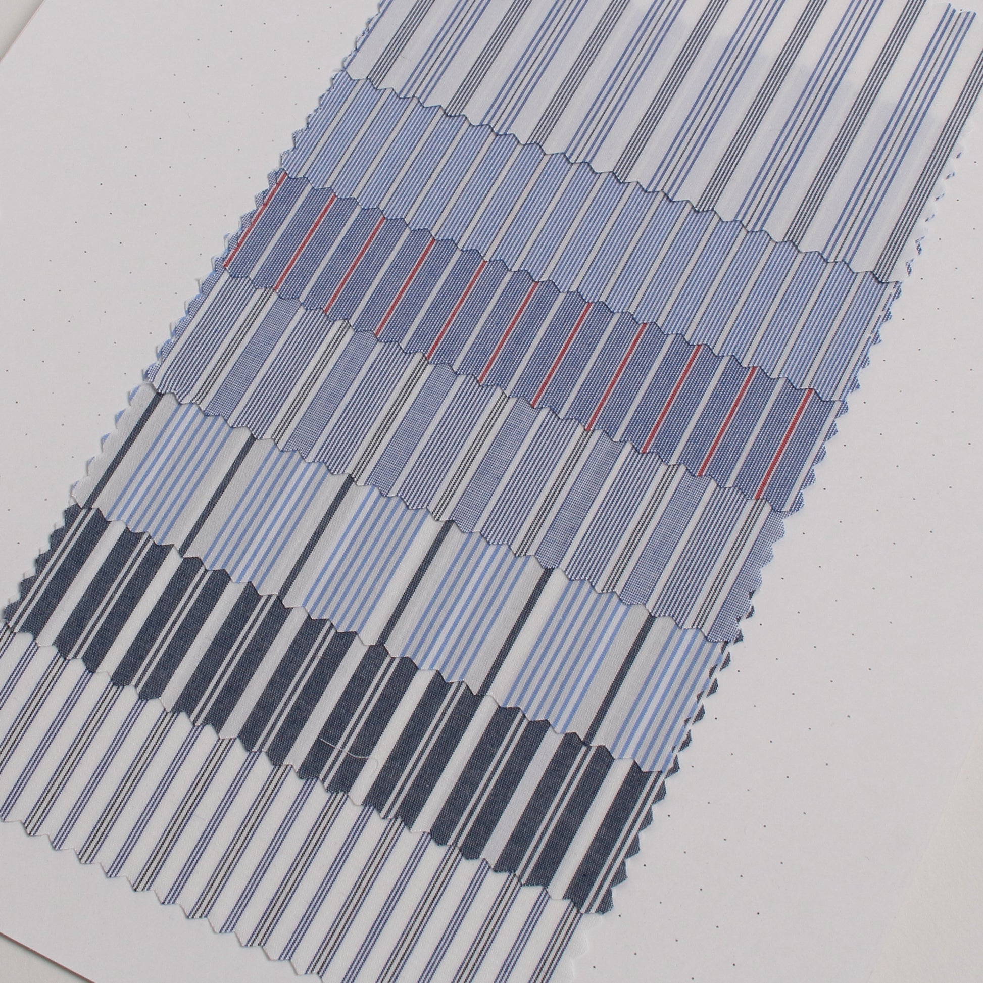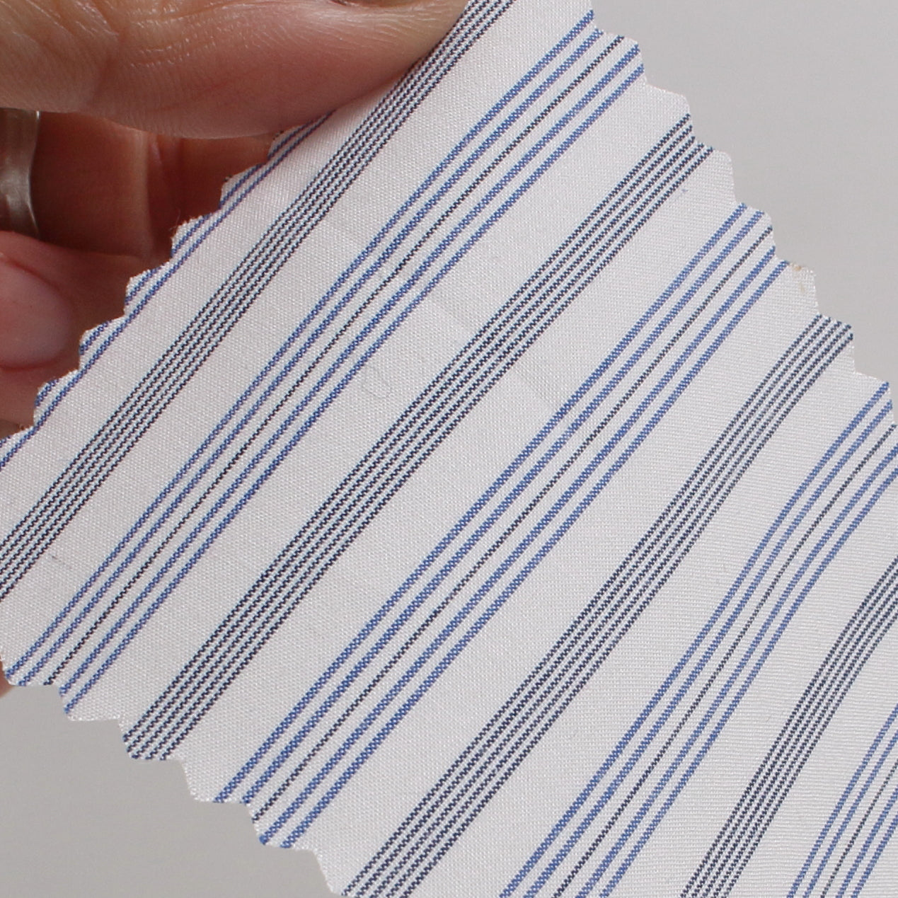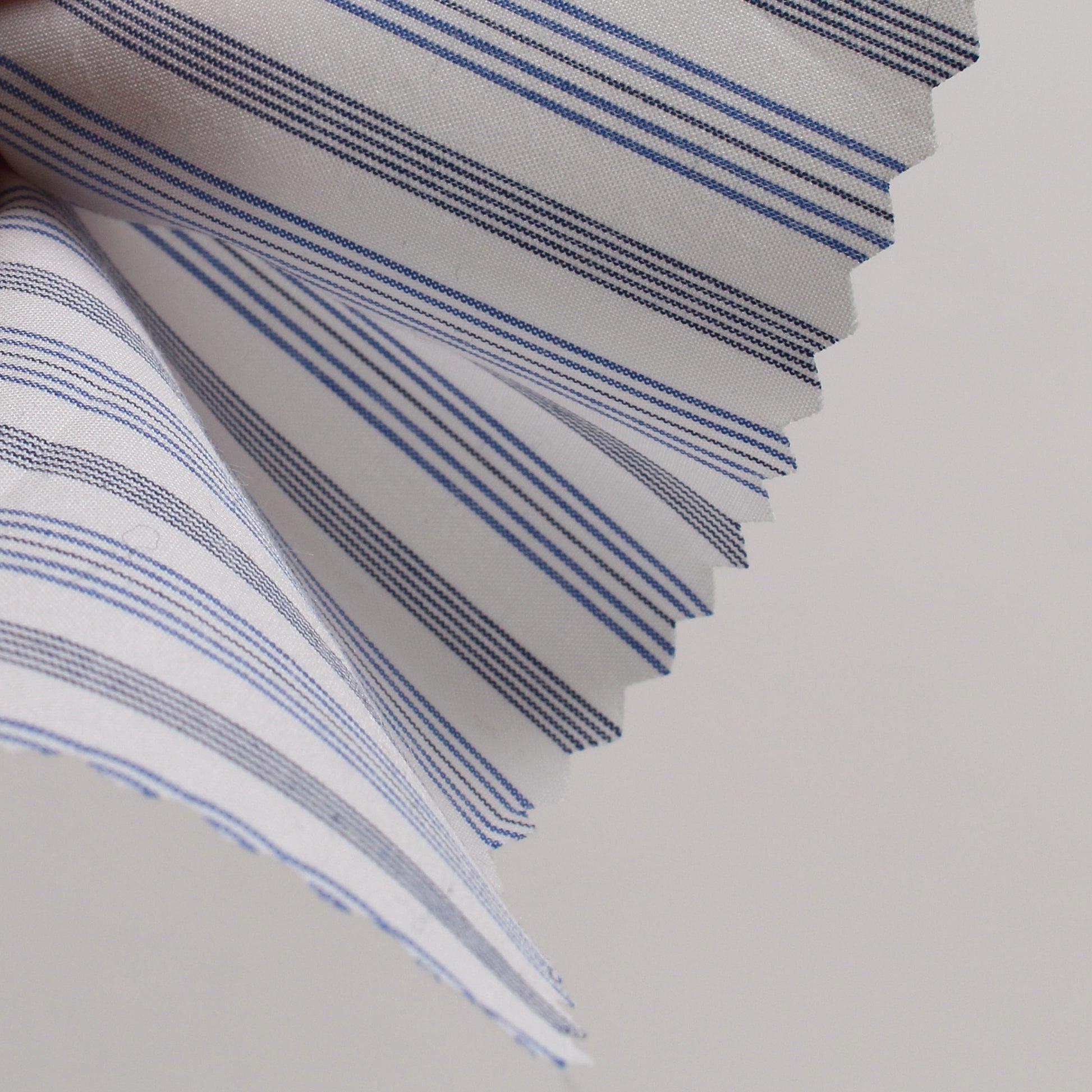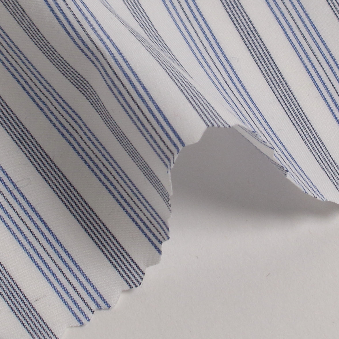 60番のコンパクト糸を使用した高密度のタイプライターのストライプ生地です。【ベイビーリップ加工】を施してあります。