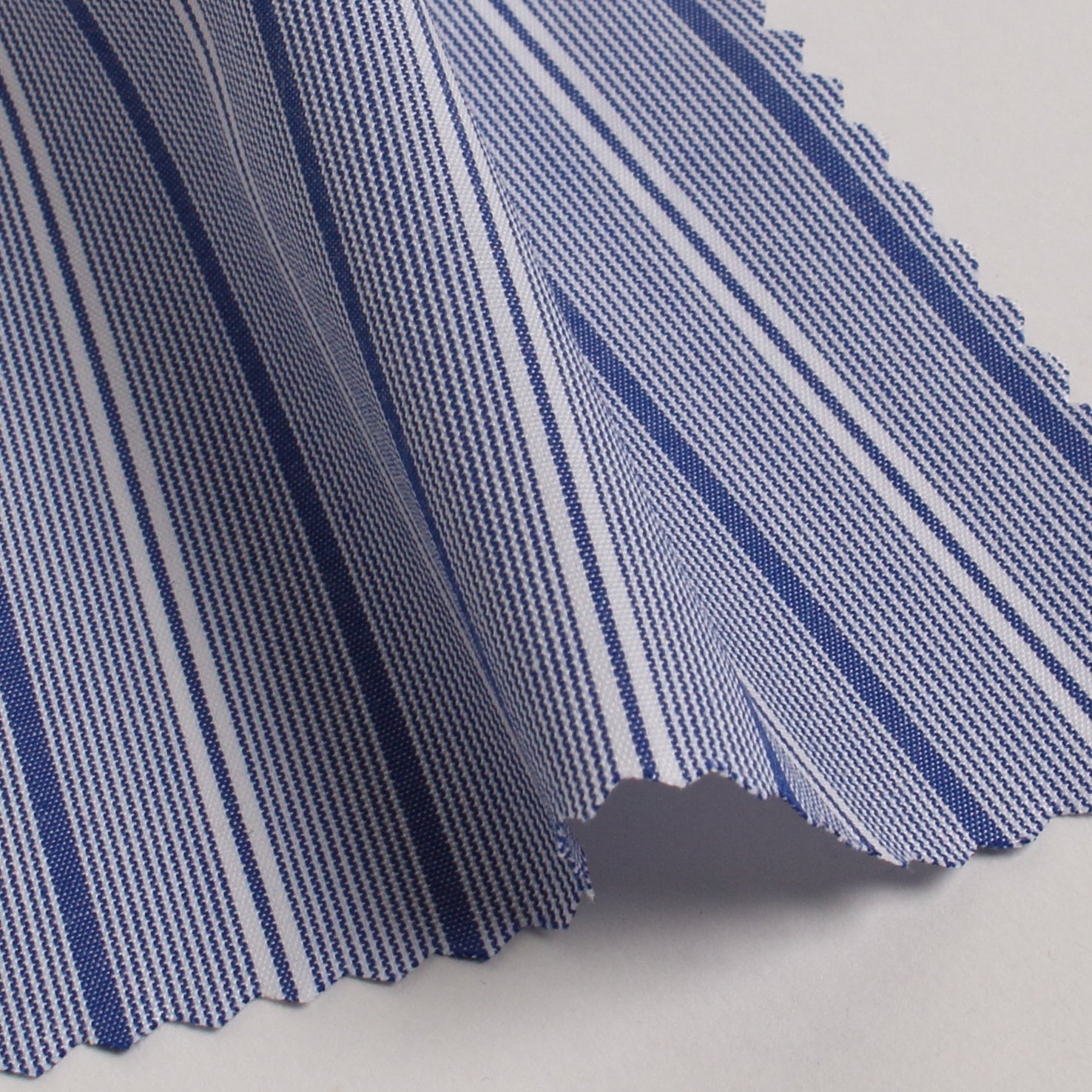 タテ糸に80番の双糸を使用したブロードのブルーストライプです。